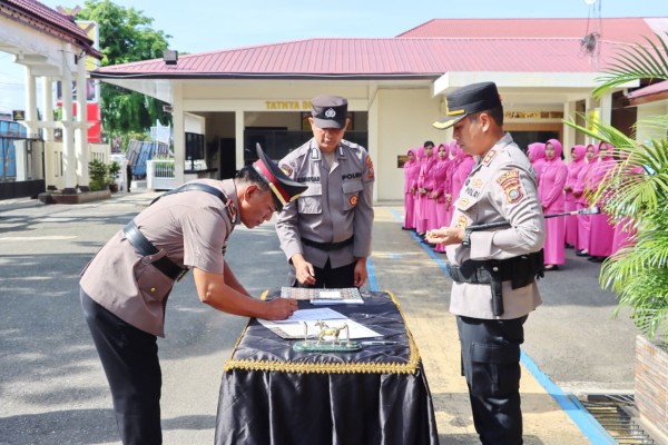 Upacara serah terima jabatan (sertijab) berlangsung di Mapolres Padangsidimpuan pada Jumat (17/4/2026). Upacara tersebut dipimpin langsung oleh Kapolres Padangsidimpuan AKBP Dr. Wira Prayatna SH SIK MH. Selain menandai pengangkatan Kapolsek Hutaimbaru, upacara tersebut juga menjadi momen pergeseran sejumlah jabatan strategis di lingkungan Polres Padangsidimpuan.